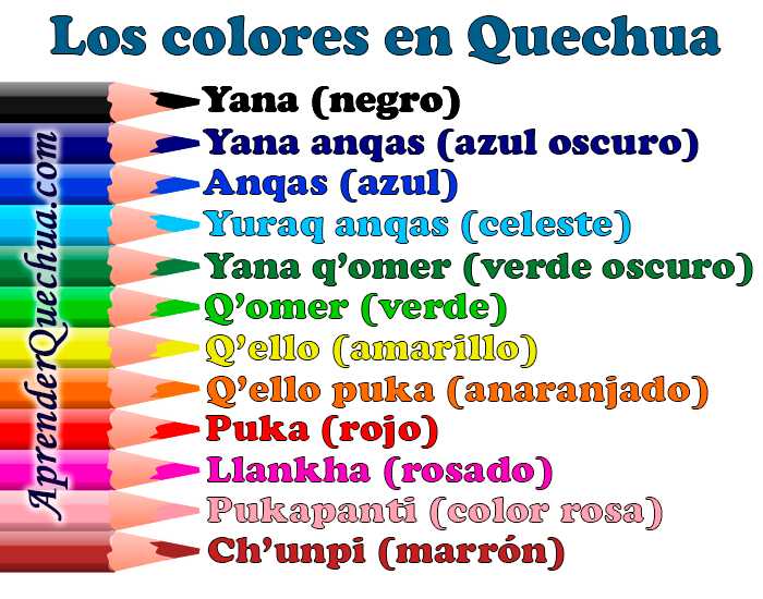 Lista completa de colores en quechua